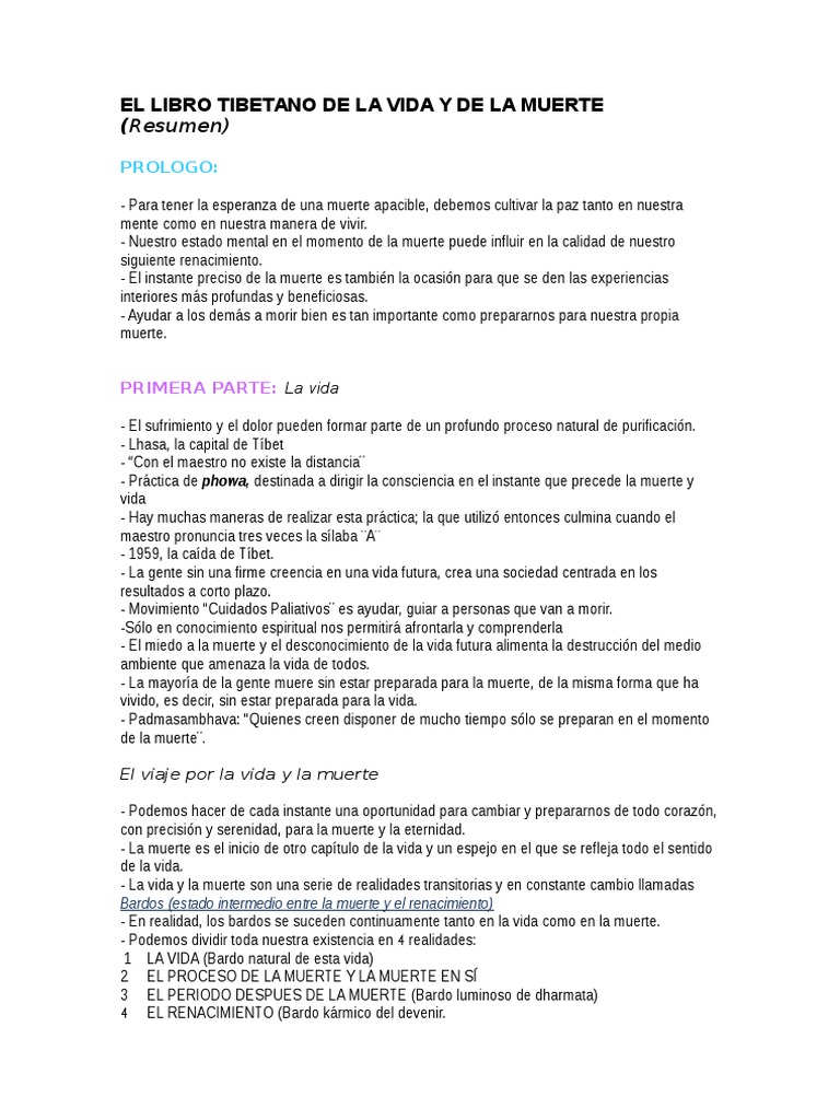 El libro tibetano de la vida y la muerte. Podemos hacer de cada instante una oportunidad para cambiar y prepararnos de todo corazón con precisión y serenidad, para la muerte y la eternidad. Descargar y leer el libro tibetano de la vida y de la muerte gratis pdf online descargar : Para la cultura tibetana, sumamente rica august 16, 2018 | author: Desde su primera infancia, rimpoché disfrutó de una relación particularmente íntima y afectuosa con este gran maestro.